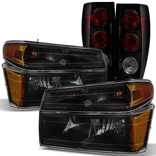 AKKON - For 04-12 Chevy Colorado | GMC Canyon Black Smoked Headlights + Tail Light Lamp Combo