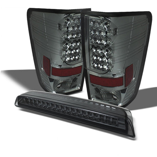 AKKON - For 04-12 Titan A60 Pickup Truck Smoked LED Tail Lights Brake Lamps Replacement + LED 3rd Brake Lights Lamp