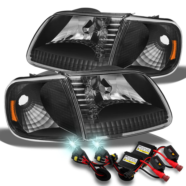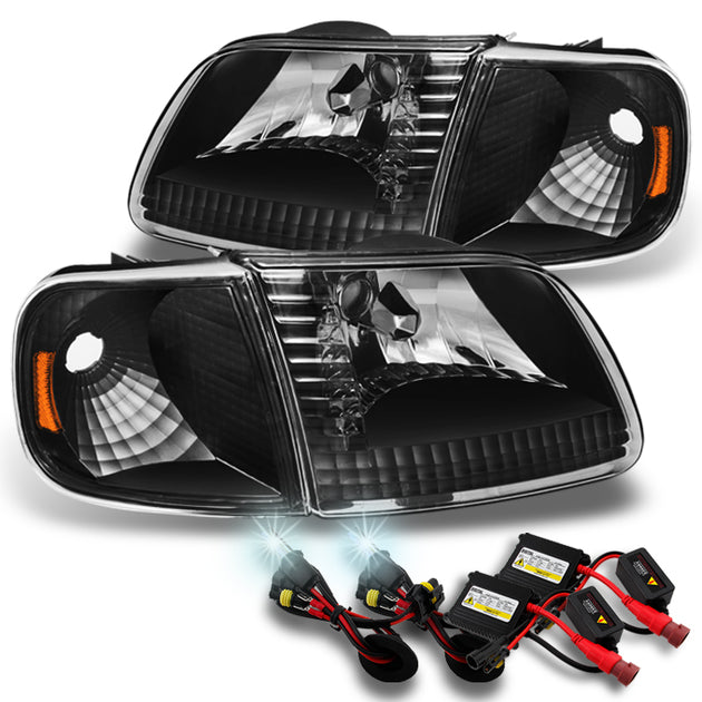 AKKON - For Ford F150 F250 Light Duty Heritage Expedition Black Headlights Corner Lamp +6000K Slim HID Xenon Kit