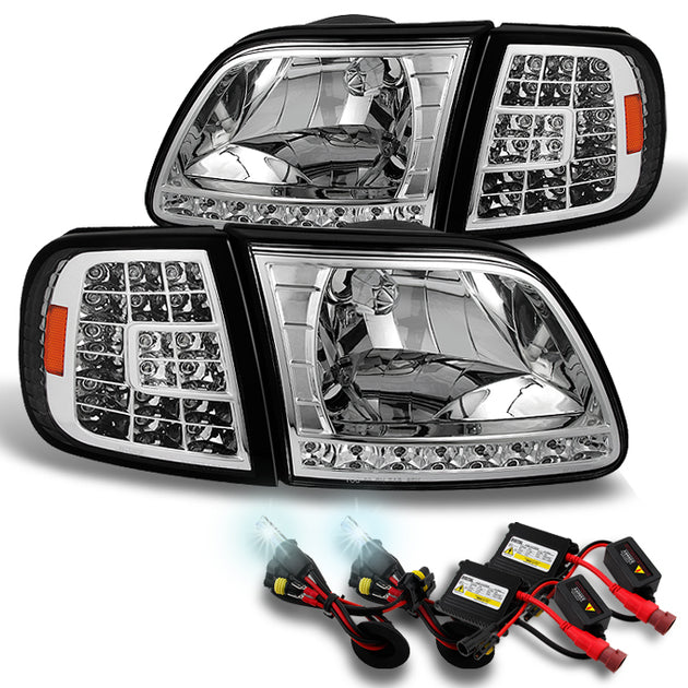 AKKON - For Ford F150 F250 Light Duty Heritage Expedition Headlights Corner Lamps+8000K Blue/White HID Xenon Kit