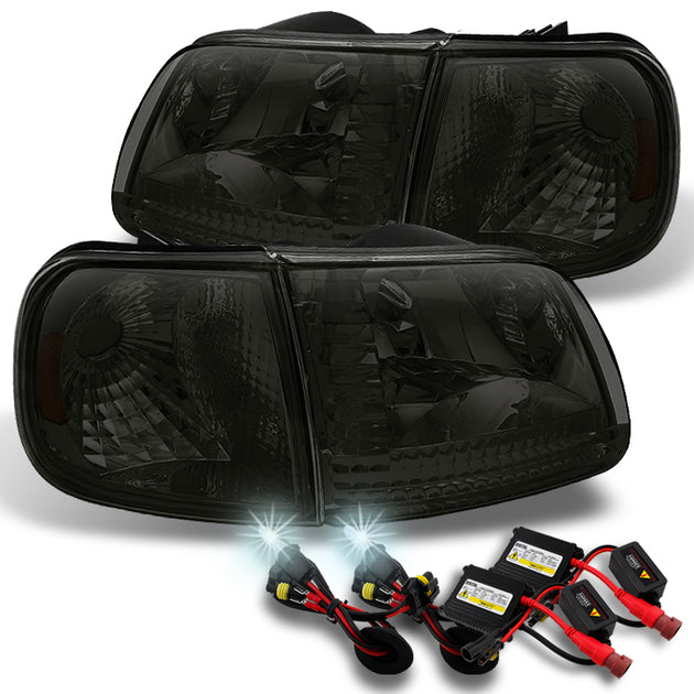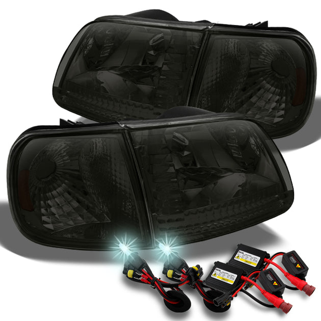 AKKON - For Ford F150 F250 Light Duty Heritage Expedition Smoke Headlights Corner Lamps +6000K HID Xenon Kit