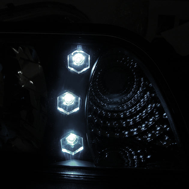 AKKON - For Ford Mustang Coupe Smoked Smoke Halo Ring 1pc Design Projector Headlights w/ Corner Signal Lamps
