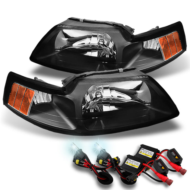 AKKON - For Ford Mustang OE Replacement Black Headlights Driver/Passenger Head Lamps +8000K Slim HID Xenon Kit
