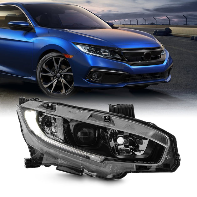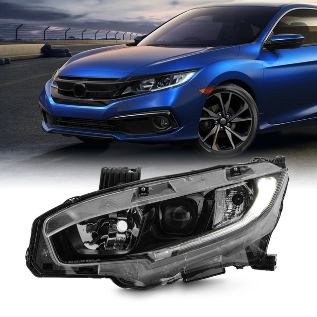 AKKON - Fit 2019 2020 2021 Honda Civic 19-21 Halogen Type Projector Headlight OE Style Black Housing Driver Left Side Assembly