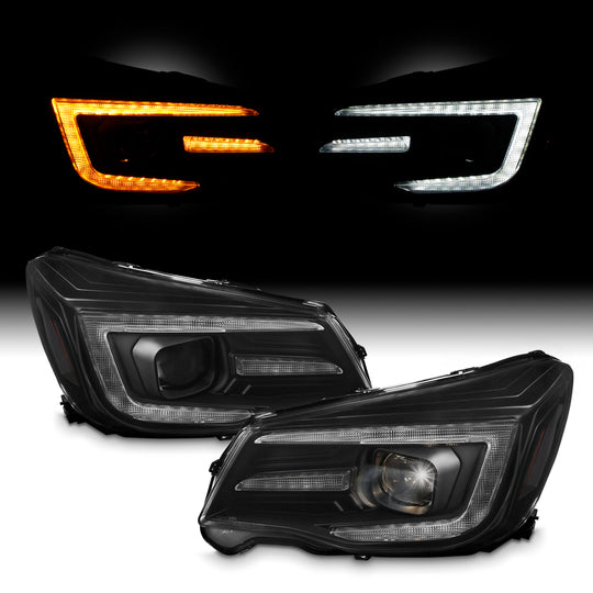 AKKON - Fit 2014 2015 2016 2017 2018 Subaru Forester [Halogen Type] Black Projector Headlight LED Sequential SwitchBack Light Bar Pair