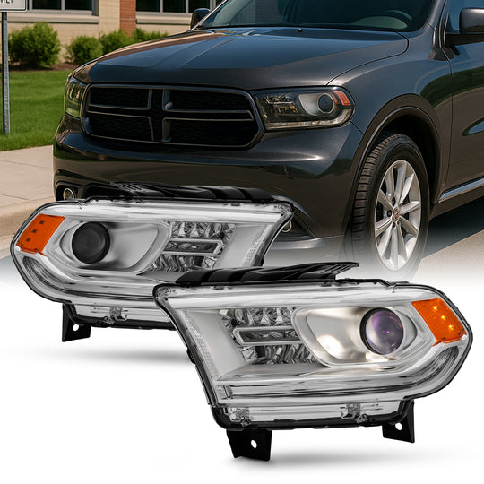 Regular price $238.99SKU: HD-JH-DDU15-OE-L_HD-JH-DDU15-OE-R This is a 100% brand new Pair of Headlights Replacement Assemblies in Chrome Housing With Clear Lens Compatible With: 2014-2017 Dodge Durango Compatible with Factory Halogen Non-LED DRL Headlight Models ATTN: Not Compatible Xenon/HID... -