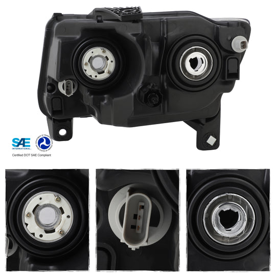 AKKON - Fit 2014-2017 Jeep Compass Halogen Type Headlight Headlamp w/ Black Trim Replacement Black Driver Side