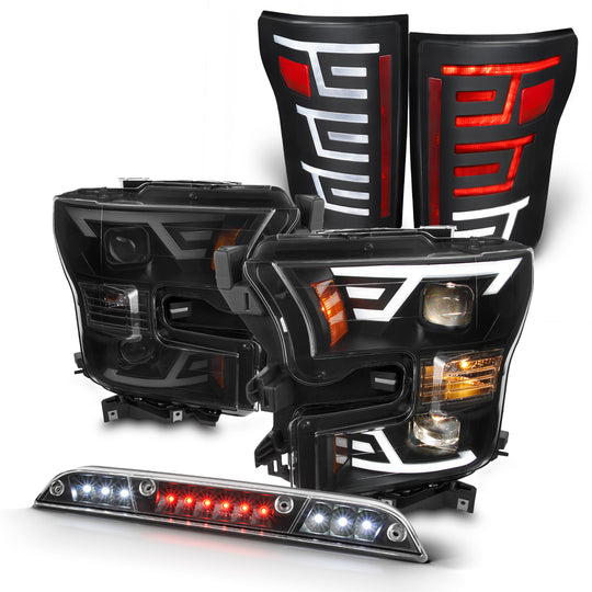 AKKON - Fit 2015-2017 Ford F150 LED Light Bar DRL Projector Black Smoked Headlight +Black-(Full LED Tail Lamp&3rd Brake)