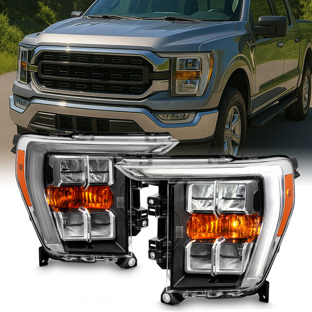 AKKON - Fit 2021 2022 2023 Ford F150 Halogen Type Projector Headlights w/Sequential LED Turn Signal Assembly Black Pair/Set