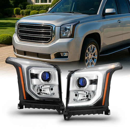 AKKON - Fit 2015-2020 GMC Yukon & Yukon XL OE LED Light Tube Style Projector Headlights - Pair Assembly