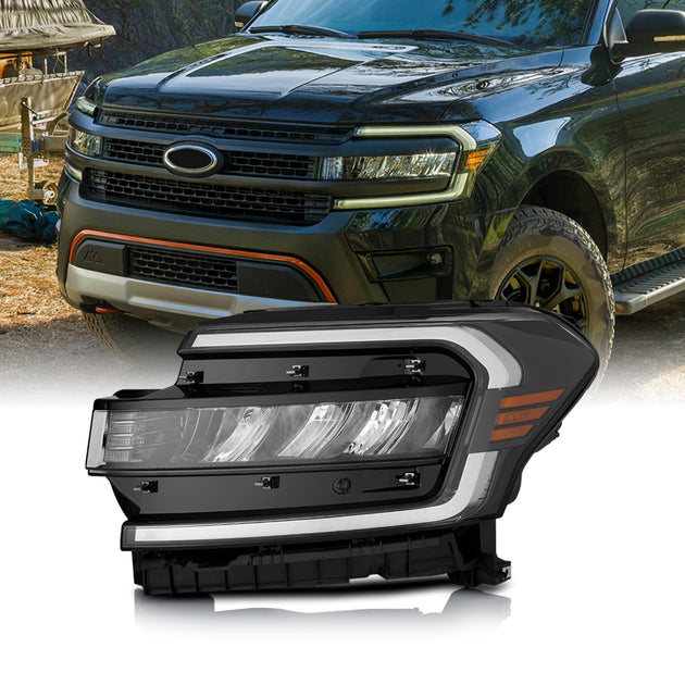 AKKON - Fit 2022 2023 2024 Ford Expedition 22-24 [Full LED] Non DRL Black Housing Headlight Headlamp OE Style Driver Left Side Direct Replacement