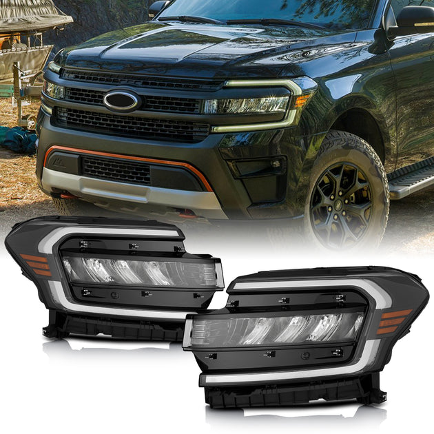 AKKON - Fit 2022 2023 2024 Ford Expedition 22-24 Full LED w/ LED DRL Black Housing Headlight Headlamp OE Style Driver - Passenger Direct Replacement