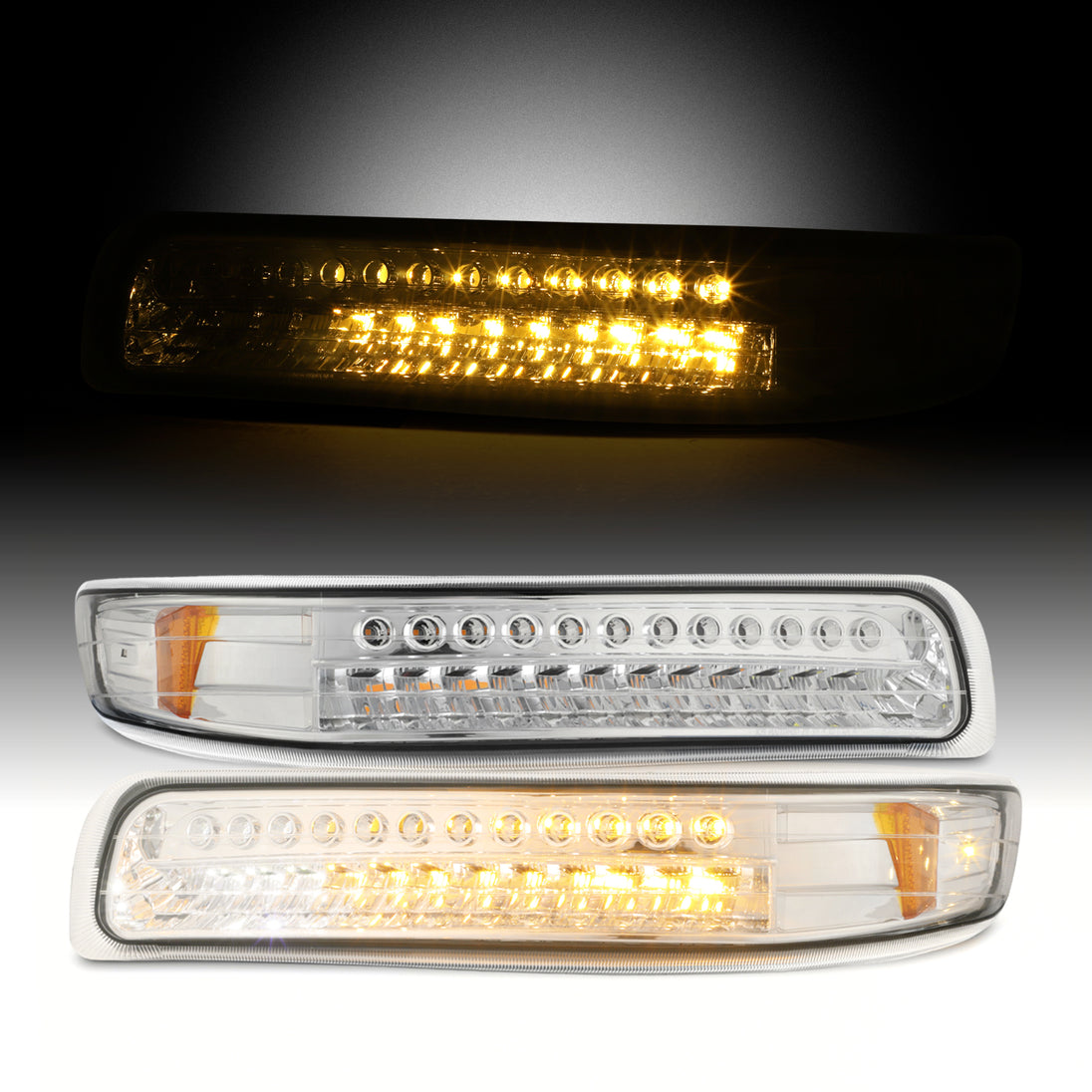 AKKON - For Chevy Silverado Suburban Tahoe Chrome Clear Amber LED Front Bumper Signal Lights Lamps Assembly