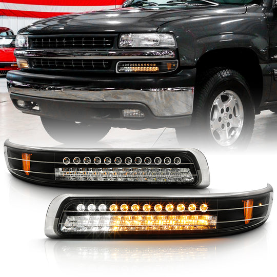 AKKON - For Chevy Silverado Suburban Tahoe Black Bezel Amber LED Front Bumper Signal Lights Lamps Assembly