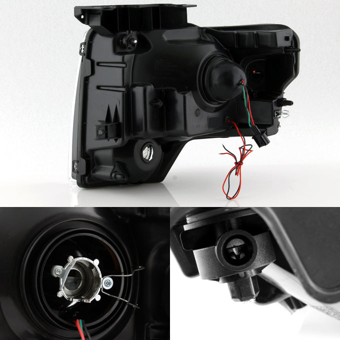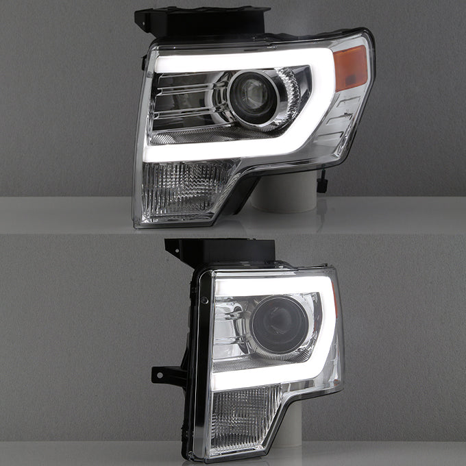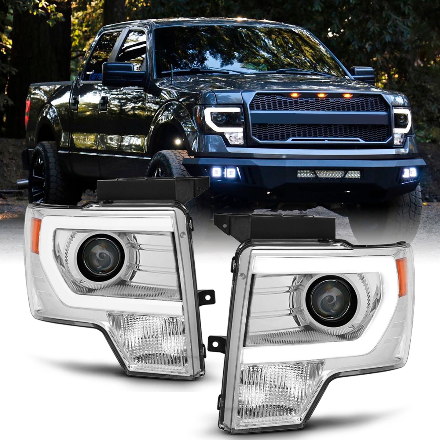 AKKON - For [HALOGEN UPGRADE] 09-14 Ford F-150 F150 Light Duty Pickup Chrome Clear C-Shape LED light Tube Projector Headlights