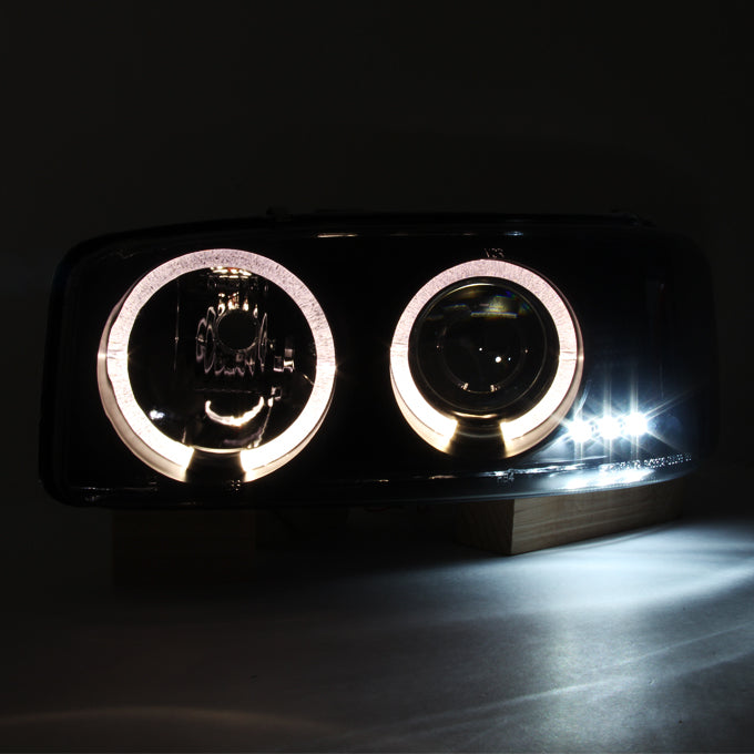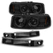 AKKON - For GMC Sierra Yukon Black Smoke Halo Projector Headlights + Bumper Signal Lights Replacement Combo