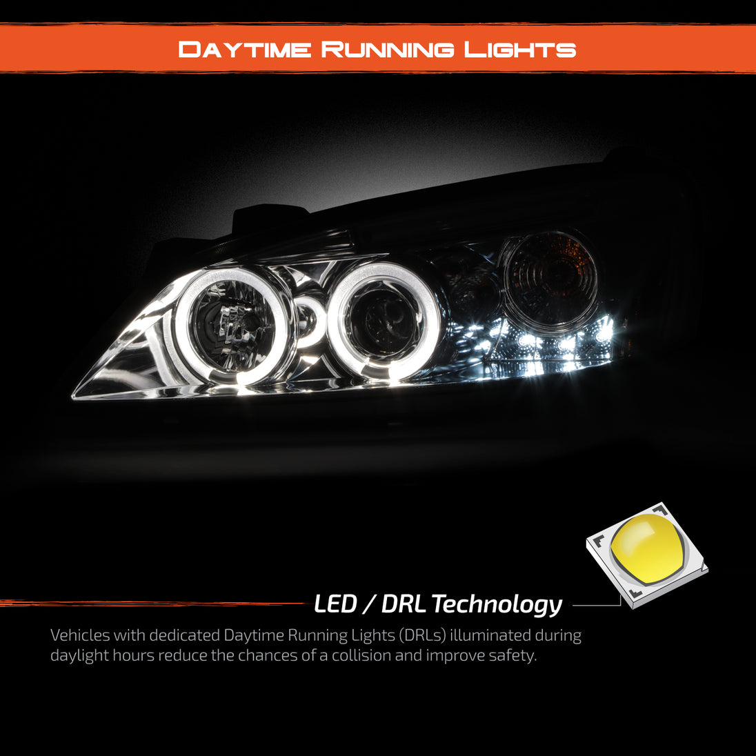 AKKON - For 2007-2014 Cadillac Escalade Xenon/HID Model Type Chrome Housing LED Daytime Running Light Tube Projector Headlight