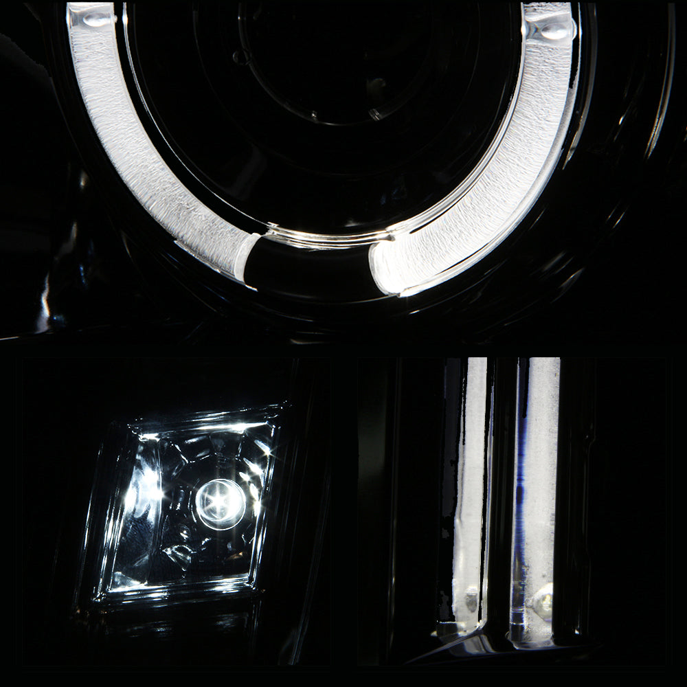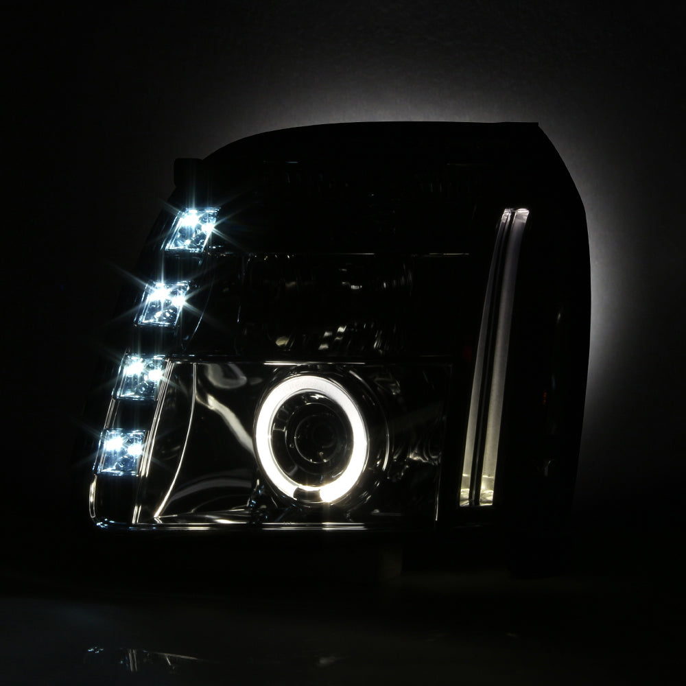 AKKON - For 2007-2014 GMC Yukon XL 1500 / XL 2500 Denali SUV Dual Halo LED Projector Smoked Headlights Front Lamps Pair