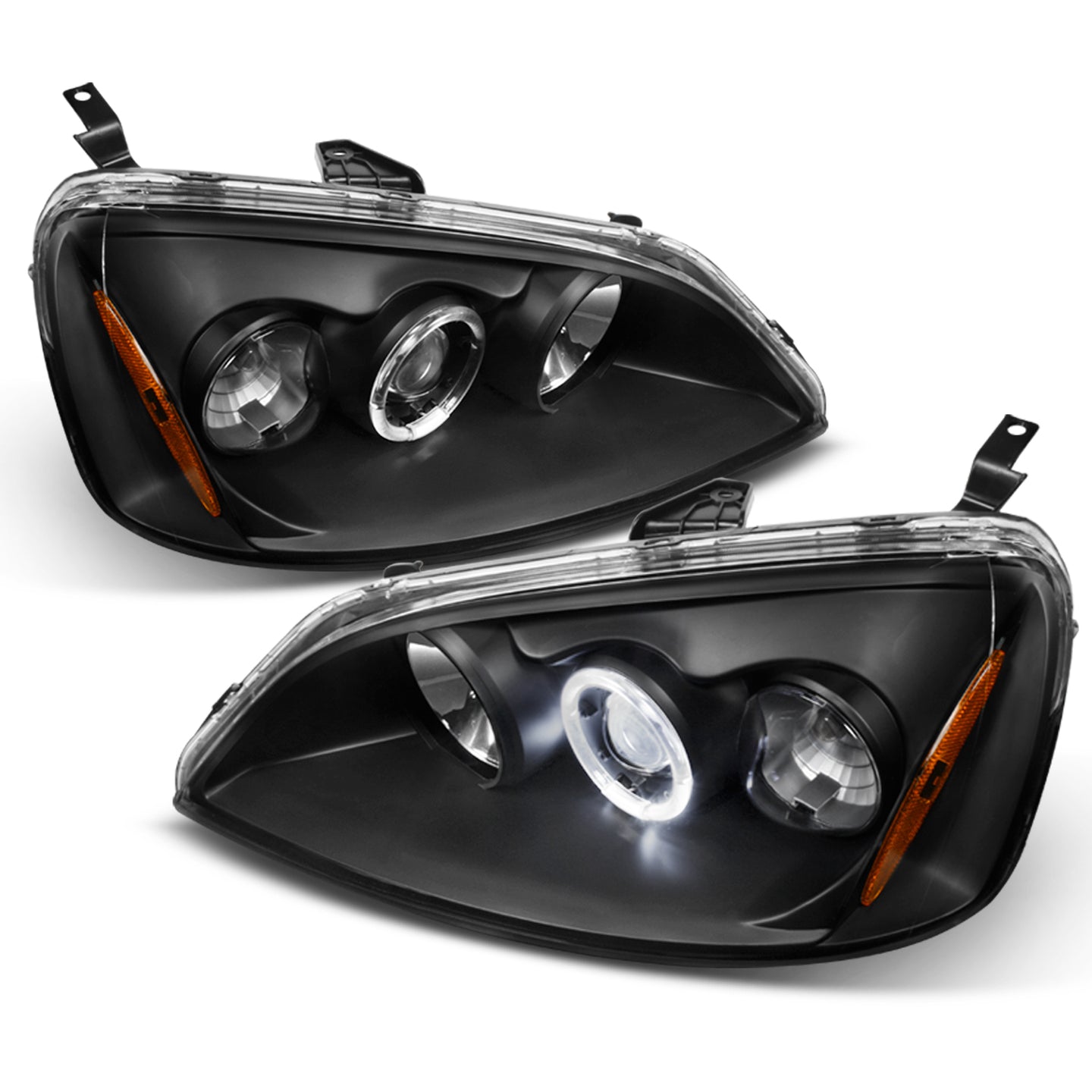 AKKON - For Honda Civic Black Bezel Halo Ring Projector Headlights Driver Passenger Replacement Lamps Pair