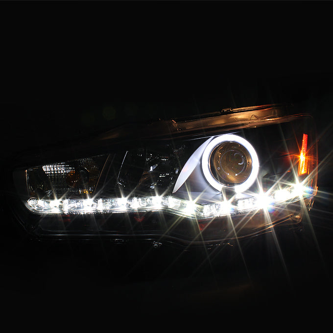 AKKON - For 08-17 Mitsubishi Lancer Evolution CZ4A EVO X Black Bezel Halo DRL LED Halogen Type Projector Headlights