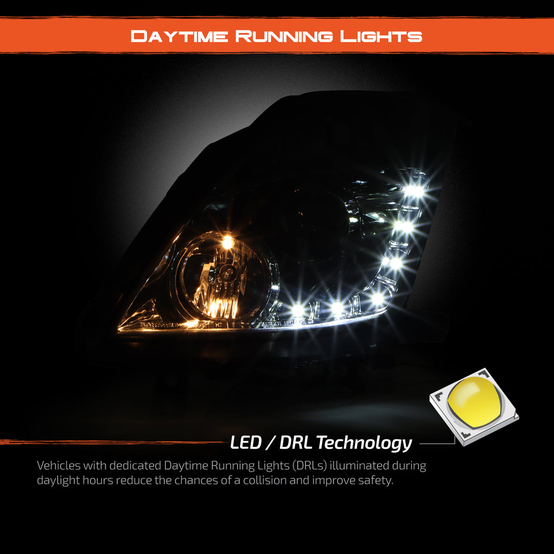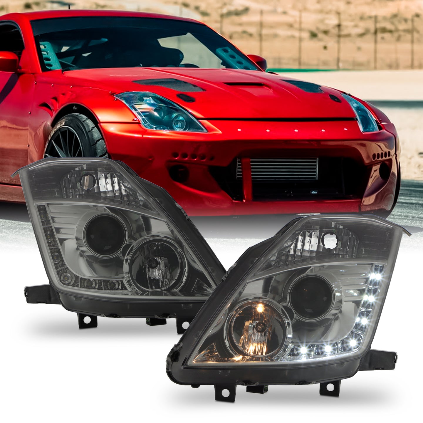 AKKON - For Nissan 350Z Fairlady Z33 Smoked Smoke DRL Daylight LED Strip Halogen Type Projector Headlights Pair