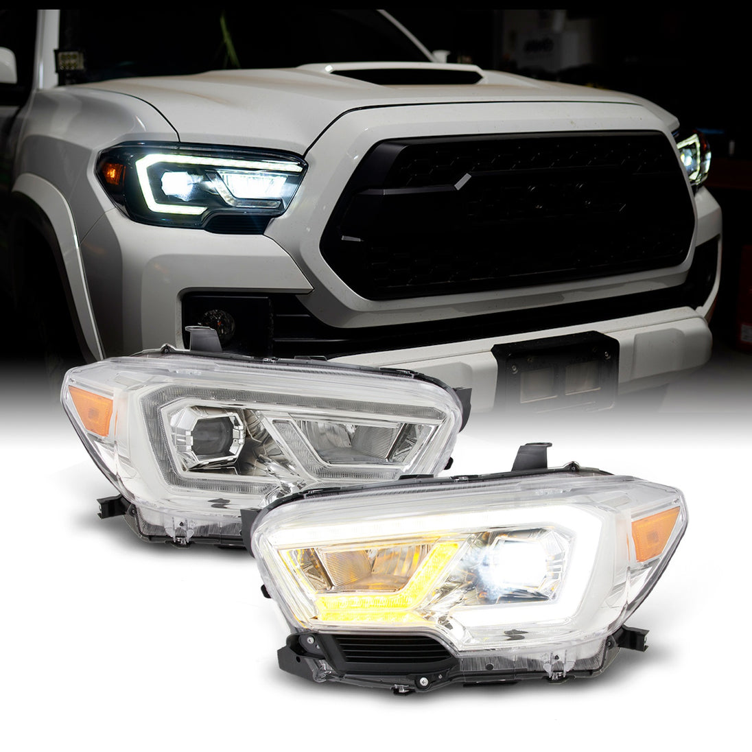 AKKON - For 2016-2023 Tacoma TRD/Limited Sequential LED Tube Design Chrome Square Projector Headlights