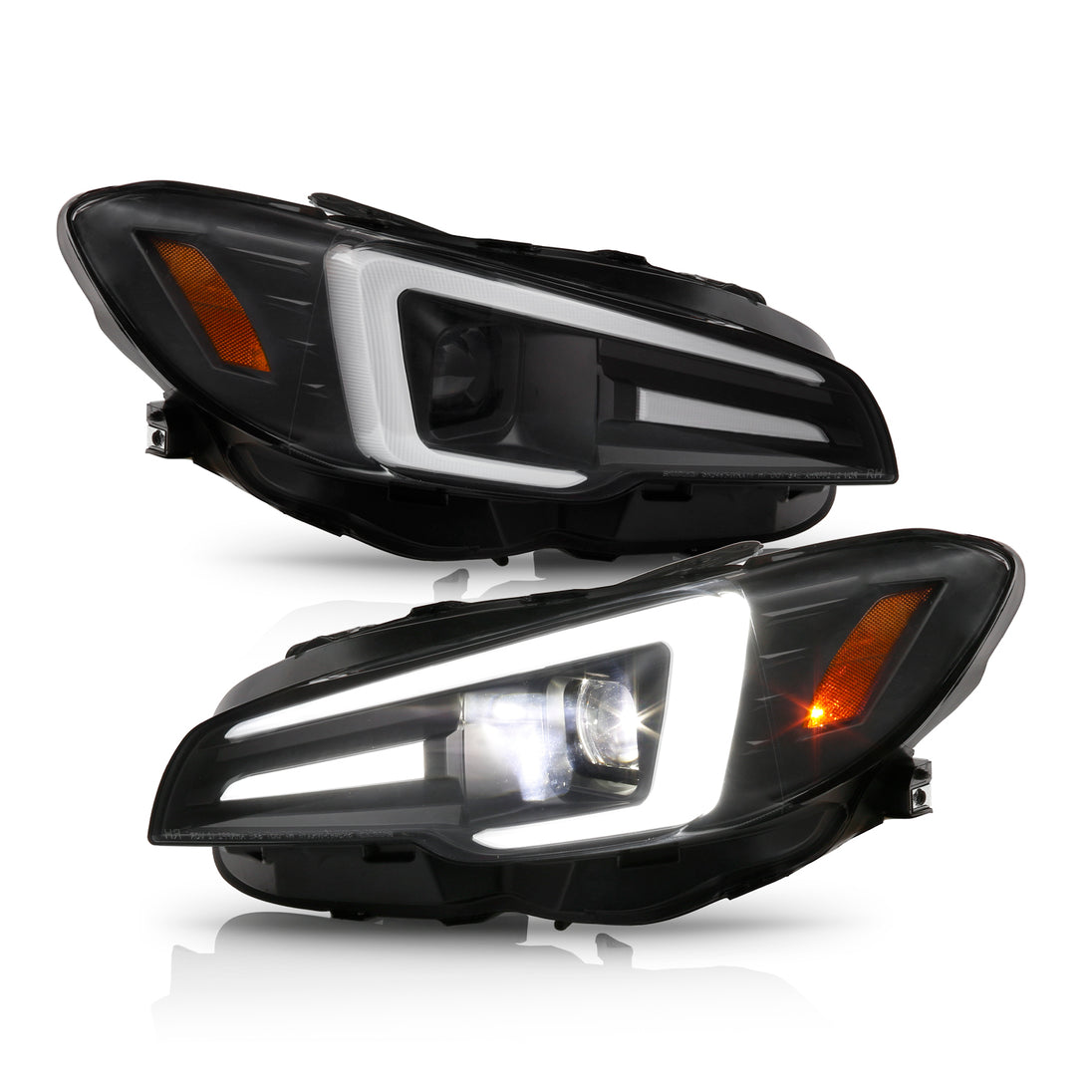 AKKON - For 2015-2020 Subaru WRX / STI Halogen Model Projector + Light Tube DRL + Sequential Switchback Premium Black Headlights