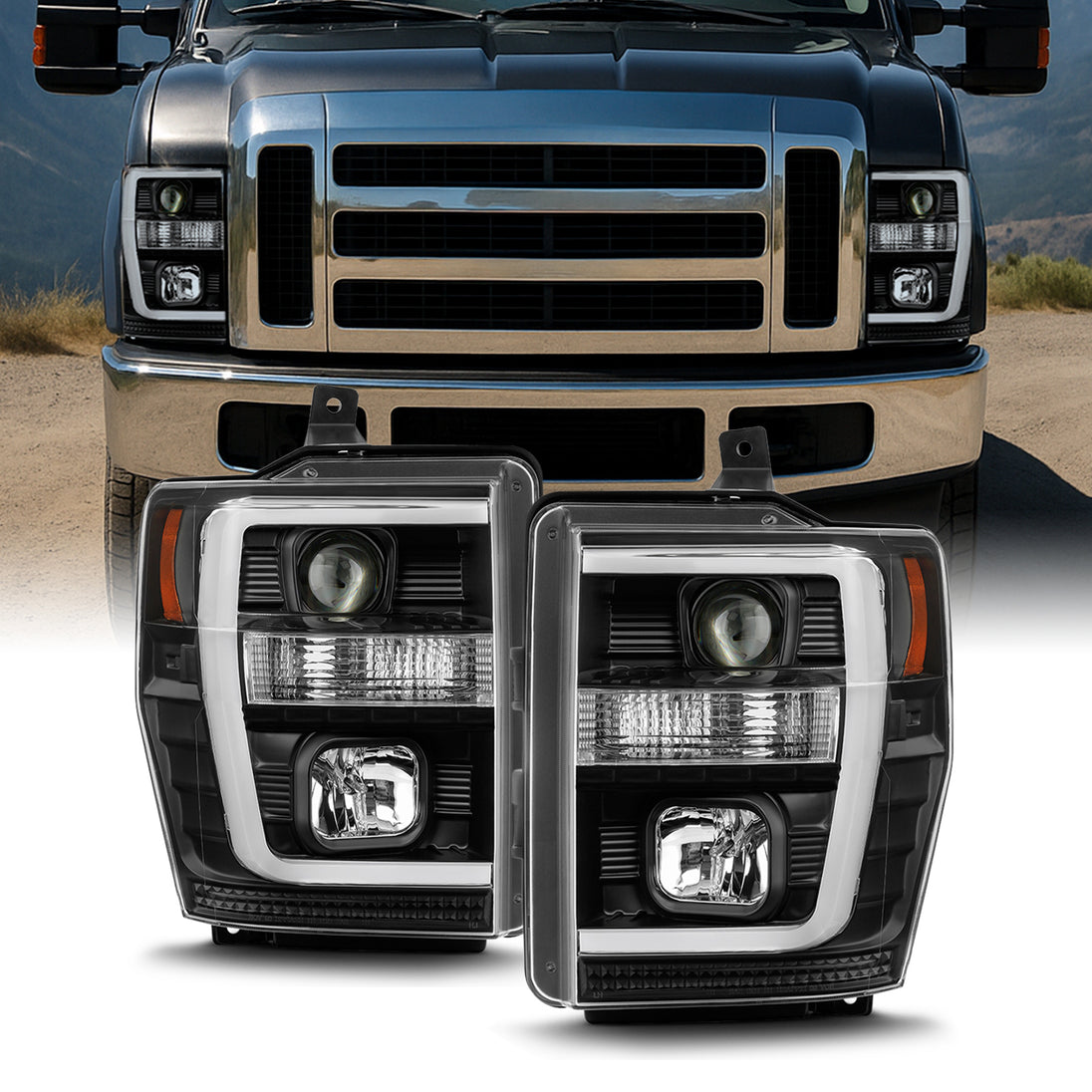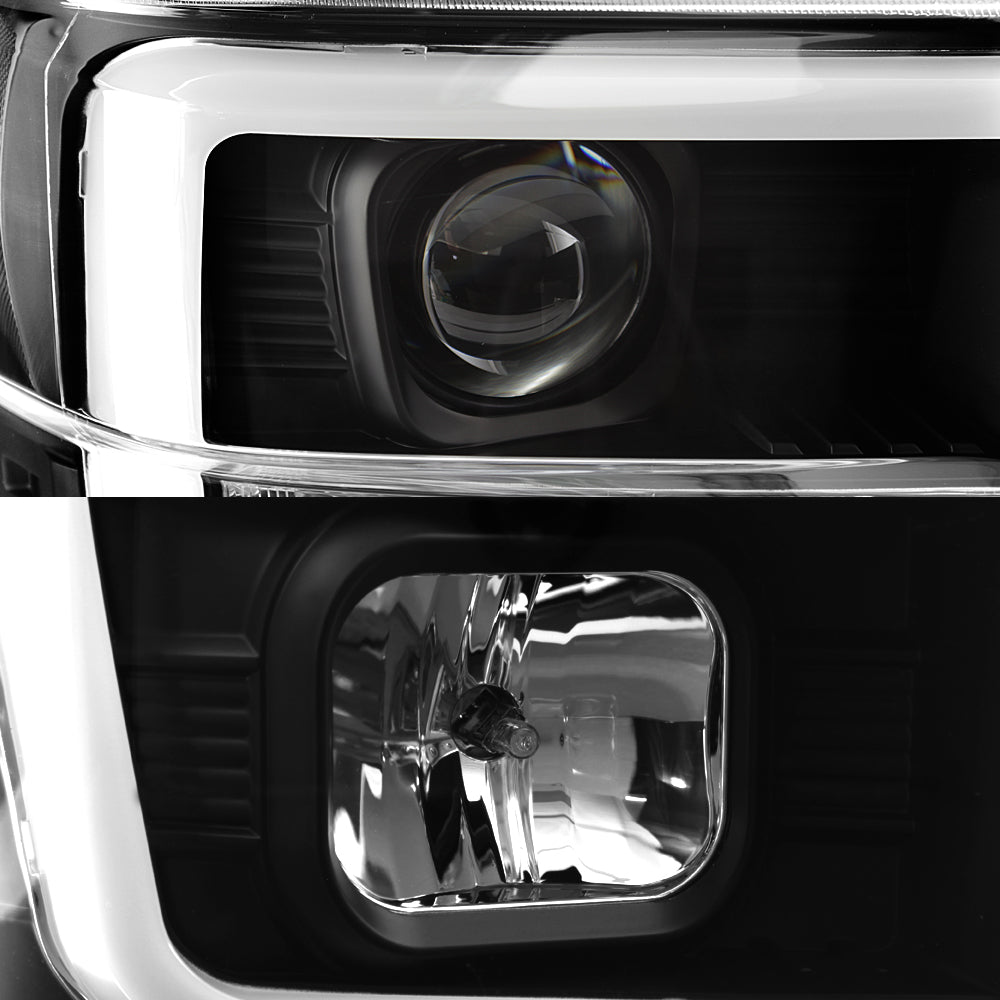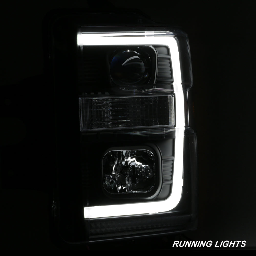 AKKON - For 2008-2010 F250 F350 F450 F550 Superduty Black LED Tube Projector Headlights Driver+Passenger Pair