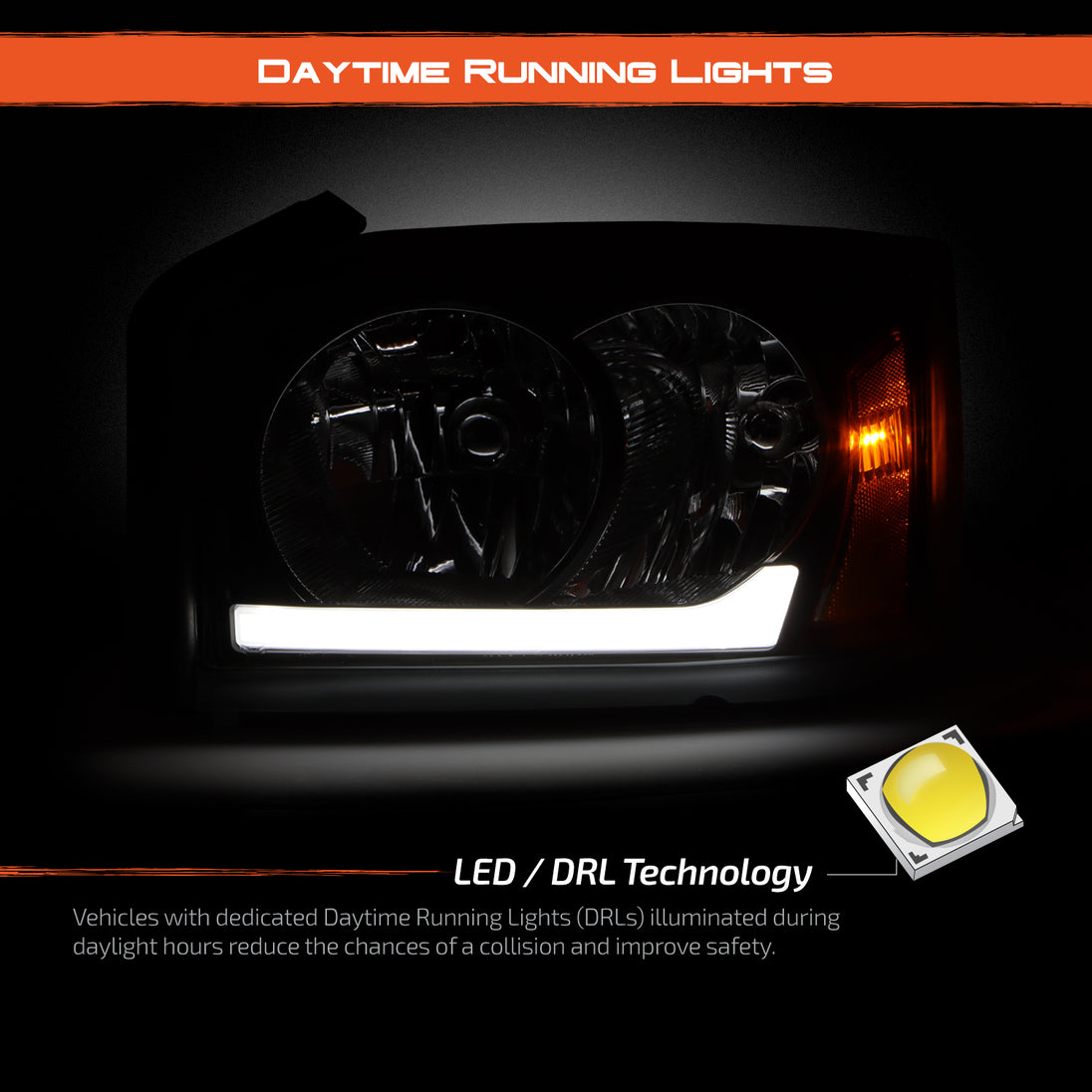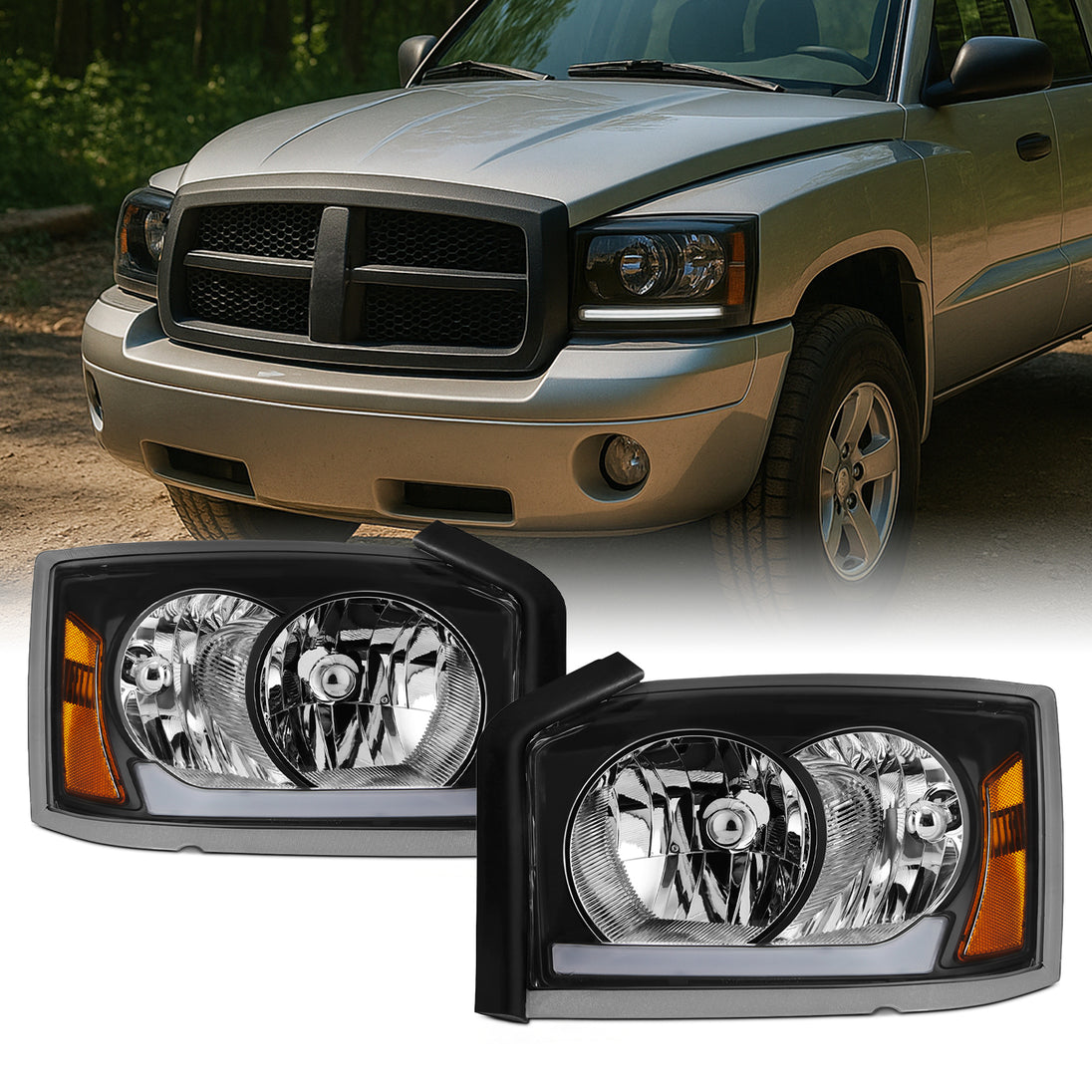 AKKON - Fits 2005-2007 Dodge Dakota [Halogen Type] Black Headlights Pair Driver+Passenger w/ LED DRL Running Turn Signal