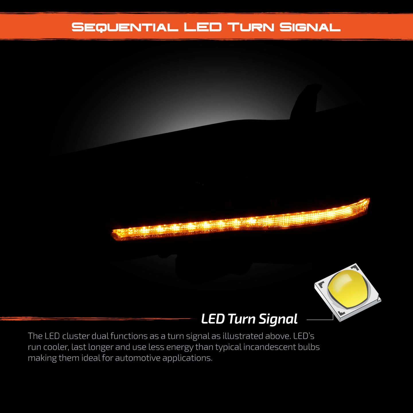 AKKON - Fits 2019-2022 RAM 1500 [Halogen Type] Black Headlights Pair w/ LED High&Low Beam + Sequential Signal + Running Tube