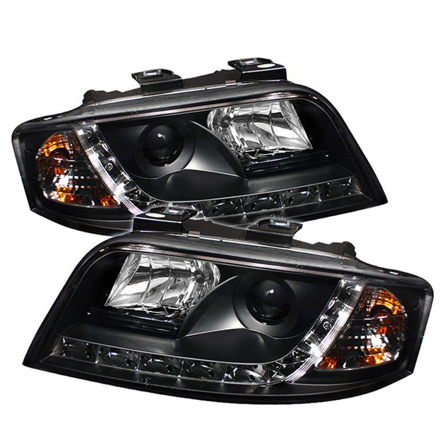 AKKON - For Audi A6 C5 Sport Sedan Black Bezel DRL Daytime LED Strip Projector Headlights Lamps Left + Right
