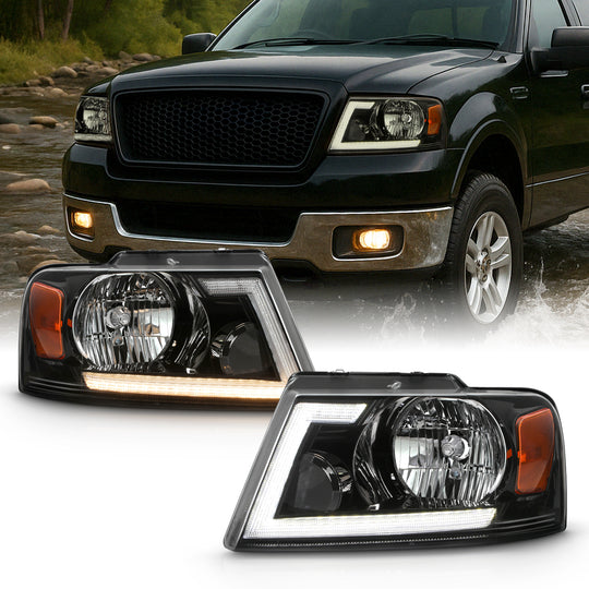 AKKON - Fits 2004-2008 Ford F150 06-08 Lincoln Mark LT Pickup Truck [LED-Tube Running Switchback Turn Signal] Black Headlights