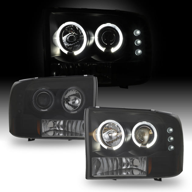 AKKON - For Ford F-Series SuperDuty 00-04 Excursion Black Smoke Dual Halo Projector Headlights Replacement Pair