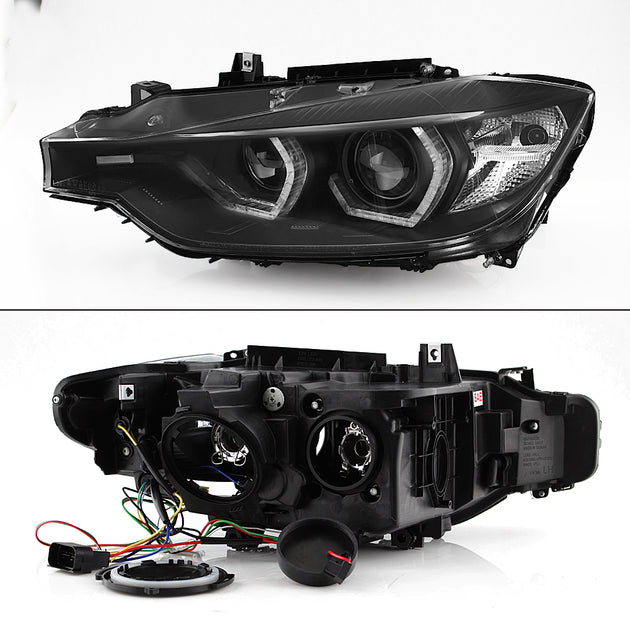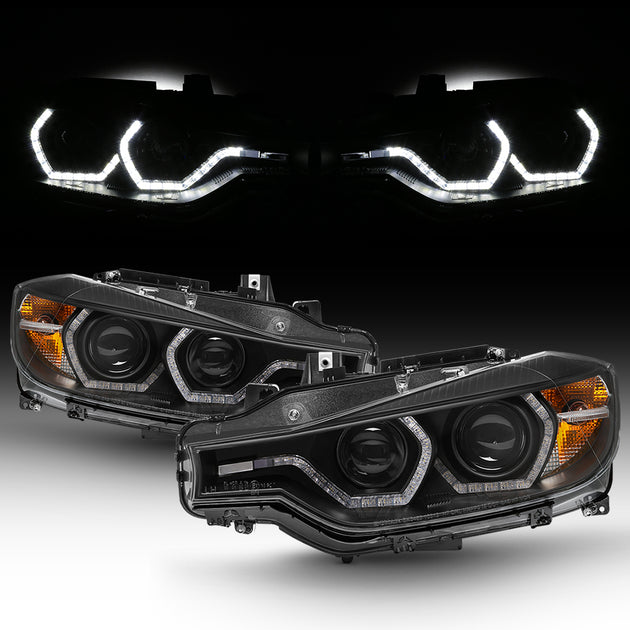 AKKON - For BMW F30 3-Series 4 Doors Sedan Black Bezel Factory Halogen Type Dual U-Halo Ring LED Projector Headlights
