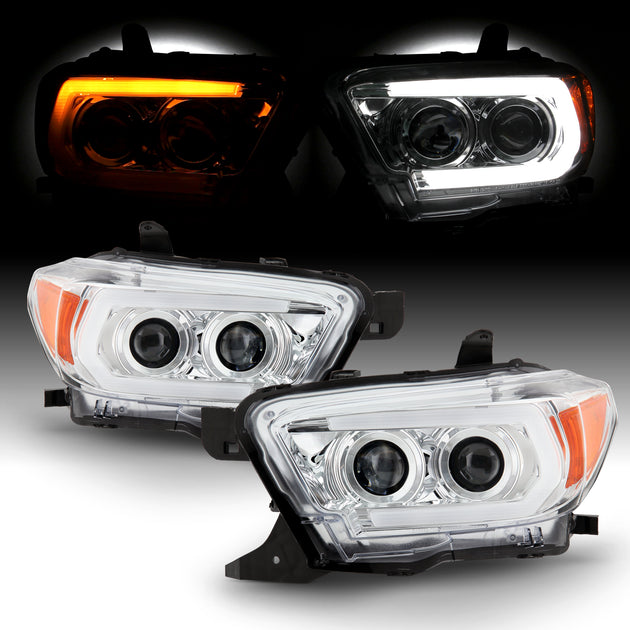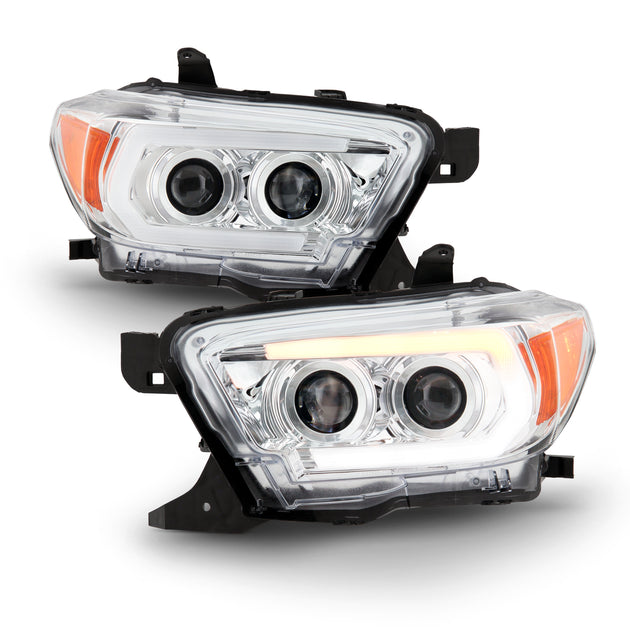 AKKON - Fits 2016-2022 Tacoma LED [C-Tube] Projector Chrome Headlights w/Sequential Turn Signal Pair