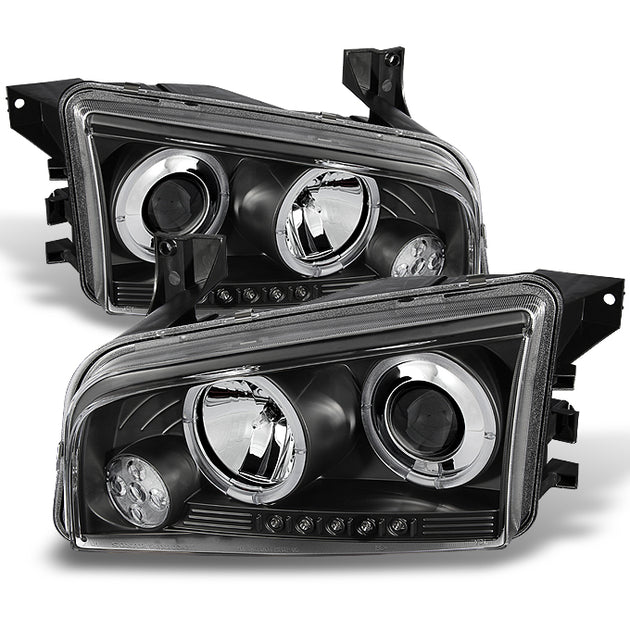 AKKON - For 2006-2010 Charger Black Bezel Dual Halo Ring DRL LED Projector Replacement Headlights Left+Right Side Pair