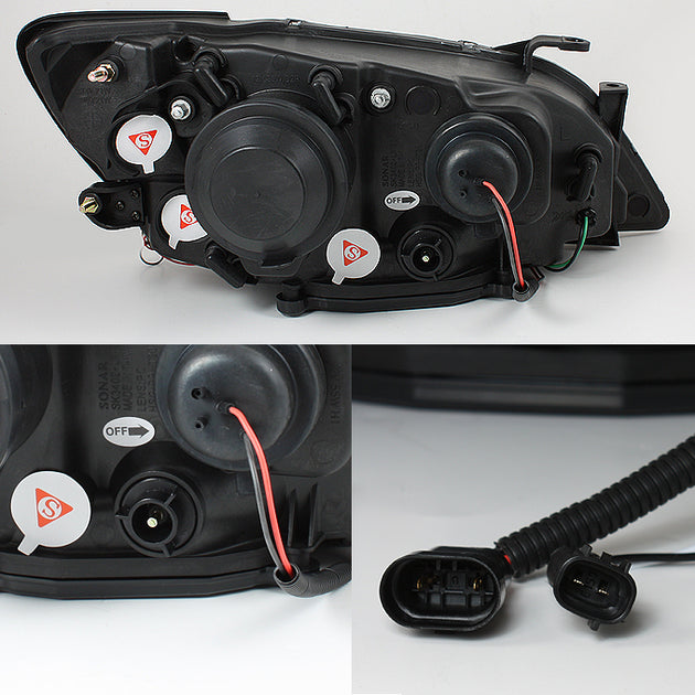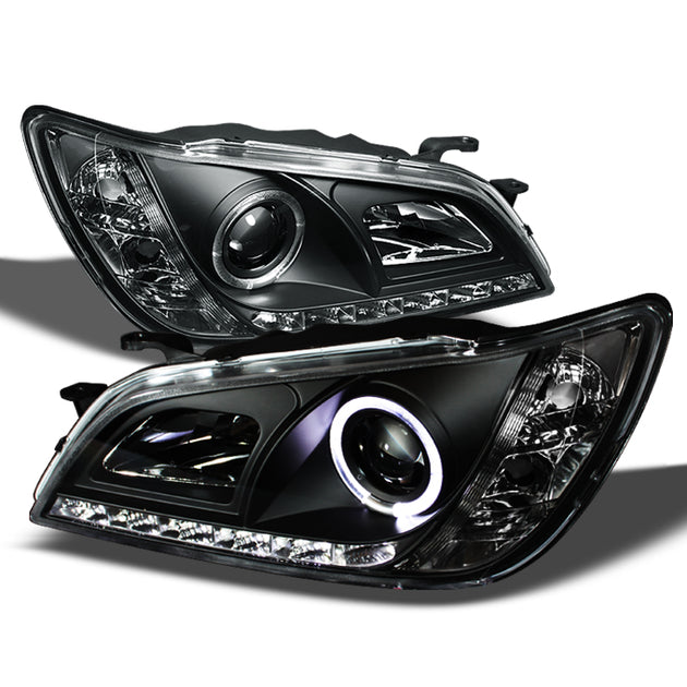 AKKON - For 01-05 Lexus Altzza IS300 Black Bezel Halo Projector DRL Daylight LED Strip Headlights Replacement Pair