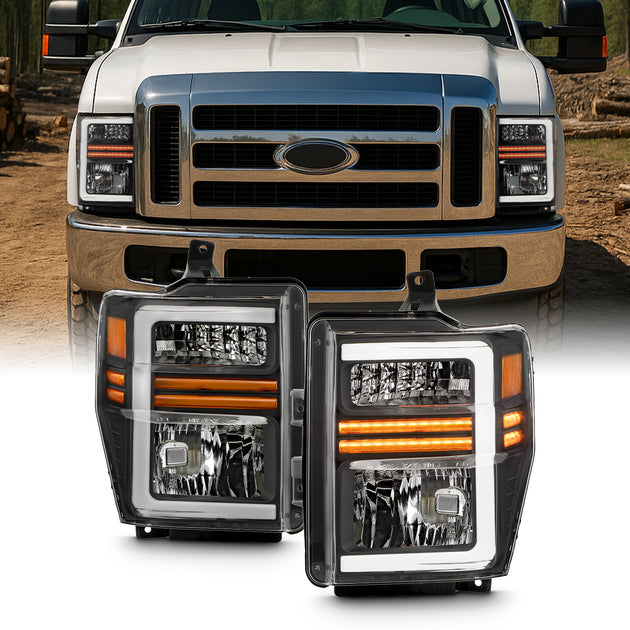 AKKON - Fits 2008-2010 Ford F250 F350 F450 F550 Super Duty Black Headlights w/ LED Sequential Turn Signal