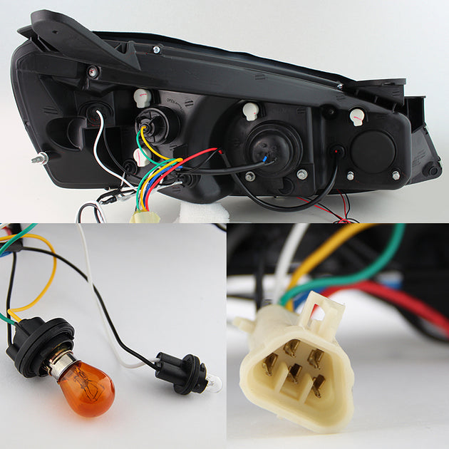 AKKON - For Mitsubishi Eclipse Black Bezel Dual Halo Design Projector Headlights Front Lamps Replacement Set