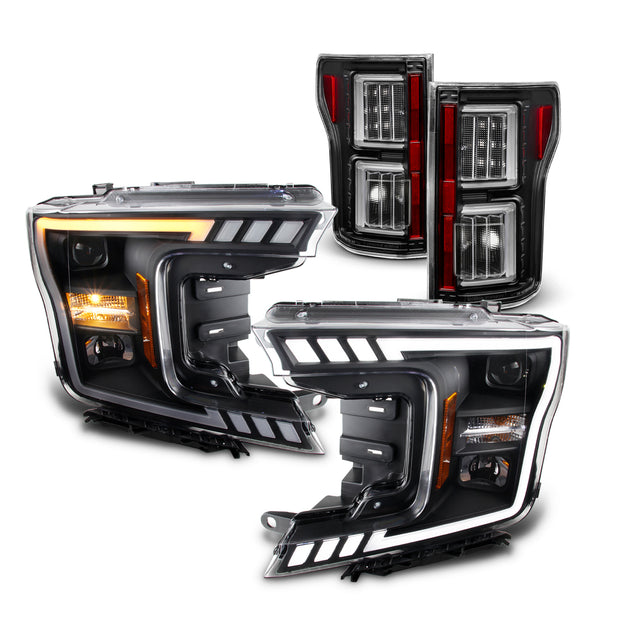 AKKON - For 2018-2020 Ford F150 LED DRL Tube Black Projector Headlights With Sequential Turn Signal + Black V2 LED Tail Light