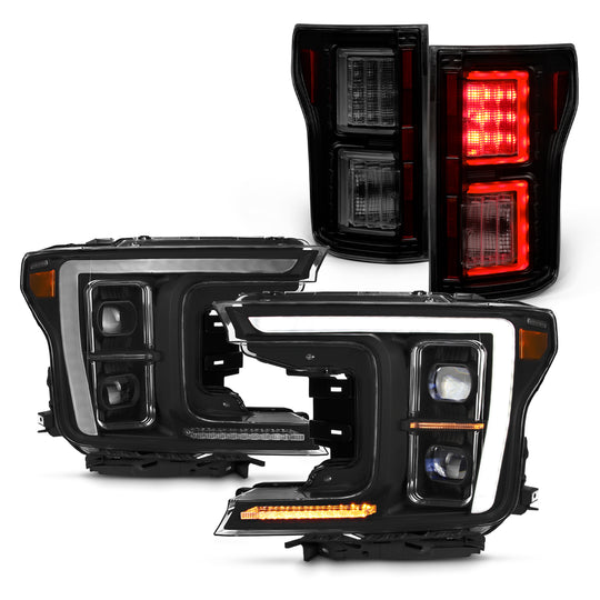AKKON - Fits 2018 2019 2020 Ford F150 [Full LED] DRL Sequential Projector Headlight + [C-Tube Light Bar] Black Smoked Tail Light Lamp Regular price $869.99This is a 100% brand new pair of Headlights in Black Housing Clear Lens & Tail lights in Smoked Lens This is a Smoked Lens Product, and It Will Be Dimmer, and Not As Bright As...