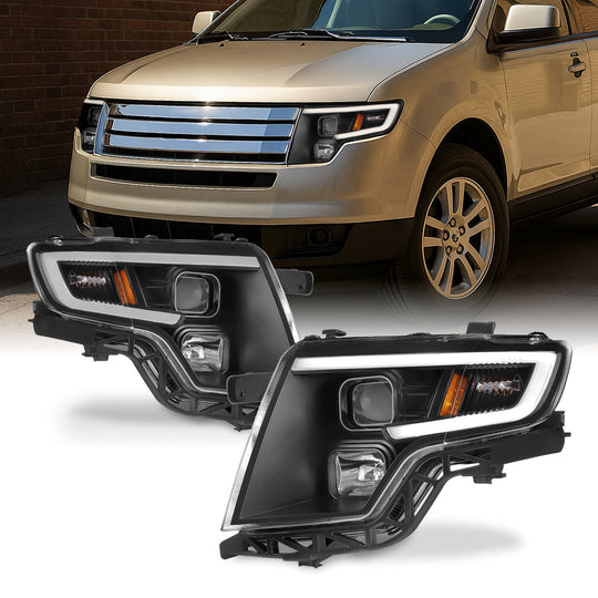 AKKON - Fits 2007-2010 Ford Edge LED Light Tube Stylish DRL Projector Headlights Pair Housing - Black Bezel