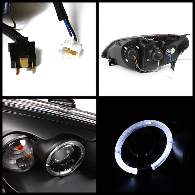 AKKON - For Honda Civic Black Bezel Halo Ring Projector Headlights Driver Passenger Replacement Lamps Pair