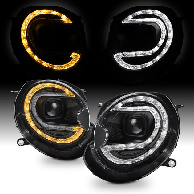 AKKON - Fits 2008-2014 Mini Cooper [Halogen Type] Projector Black Headlights Pair w/ LED Parking Turn Signal SwithcBack