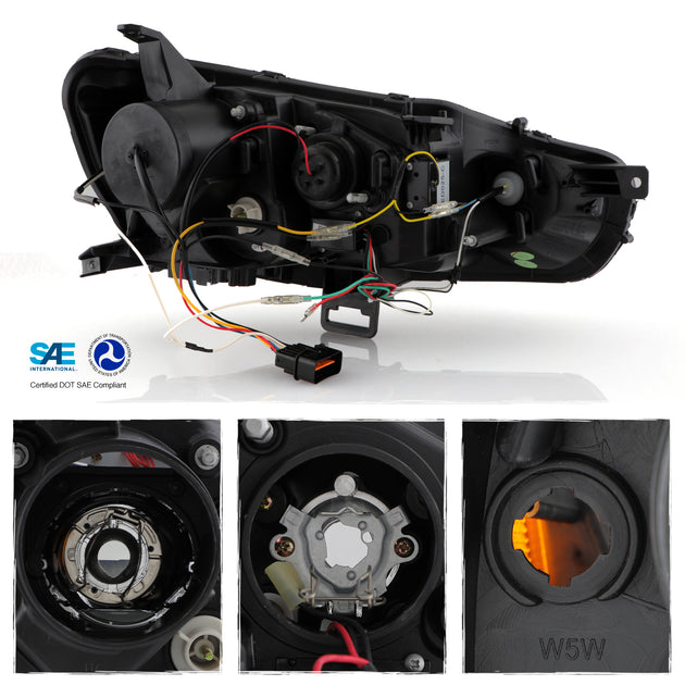 AKKON - Fits 2008-2017 Mitsubishi Lancer 08-15 Evolution LED Tube Running Sequential Signal Halogen Projector Chrome Headlights