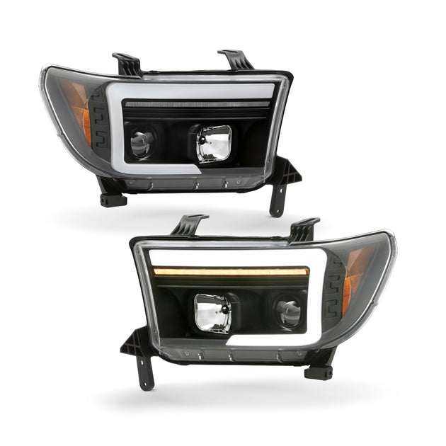 AKKON - Fits 2011-2013 Toyota Sequoia 10-13 Tundra Projector Black Headlights w/ LED Sequential Signal + Tube DRL Running Pair