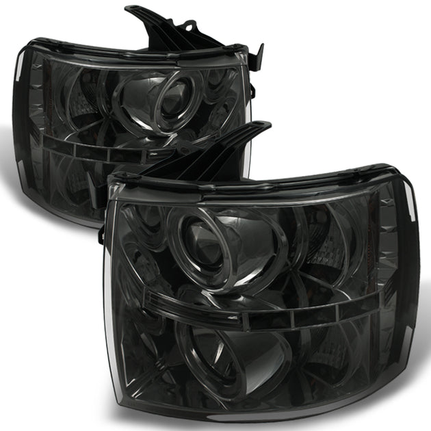 AKKON - For 2007-2013 2014 Silverado 1500 /2500HD /3500HD Truck Smoked [Dual Halo Ring] LED Projector Headlights LH+RH Pair