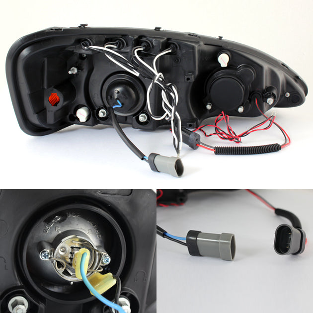 AKKON - For Scion FR-S Black Bezel DRL Daylight LED Strip Design Halogen Type Projector Headlights Front Lamps