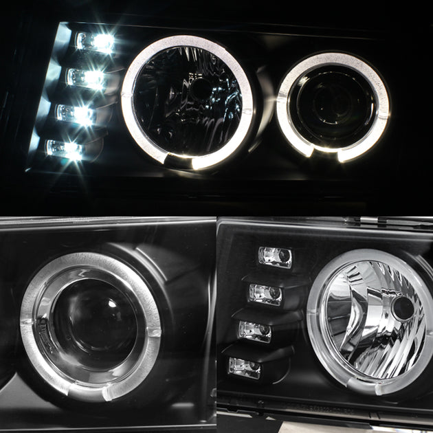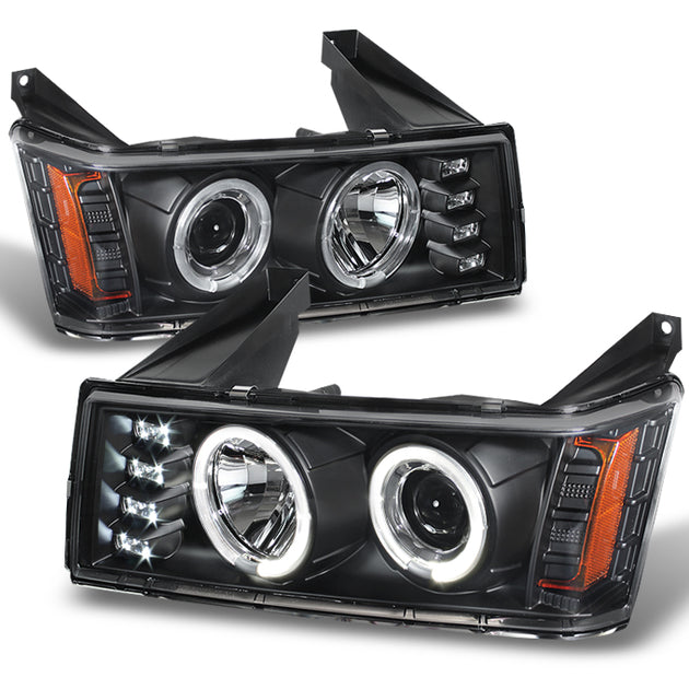 AKKON - For Chevy Colorado GMC Canyon Pickup Black Bezel Dual Halo Ring Design Projector Headlights Lamps Pair