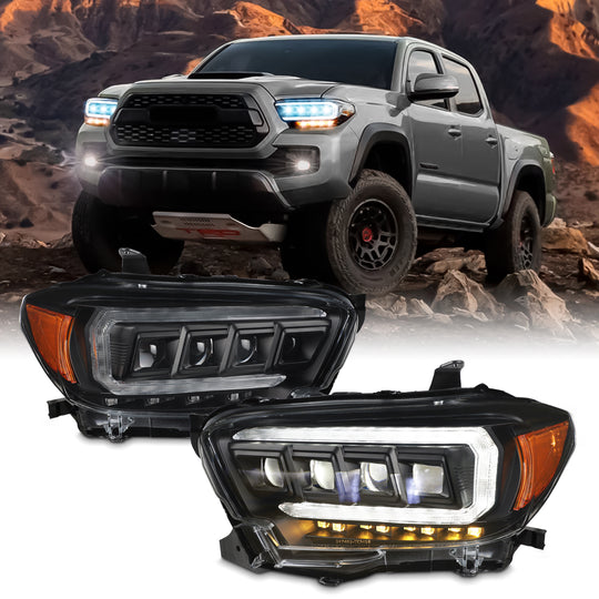 AKKON - Fit 2016-2023 Toyota Tacoma SR/SR5 [Halogen Type] w/Sequential Signal DRL Multi-Beam Projector Headlights Black Pair